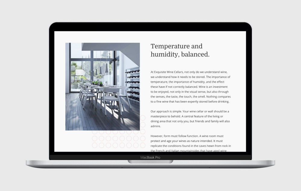 Exquisite Wine Cellars, an Arizona-based company, specialises in crafting exceptional storage solutions and technology for wine and fine wine collections. For their business launch, they needed a full branding workup and a new website.